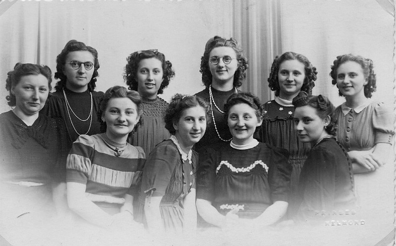 Sep09 13 30 mei 1942 achter vlnr Jeanne, Mien, Marietje, nel, Tes, Ton, voor Truus, Sisca, An, Door