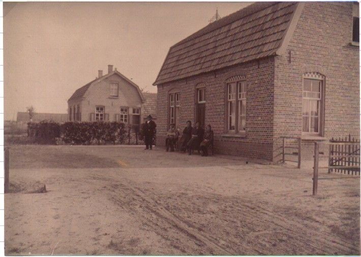 mr17 119 Fam vd Vijver Coc voor woonhuis, vlnr Piet Wicks, Hendrik vd Vijver, zn Cor, moeder Jeannet vd Vijver Cox, Wies Cox, Marie vd Vijver